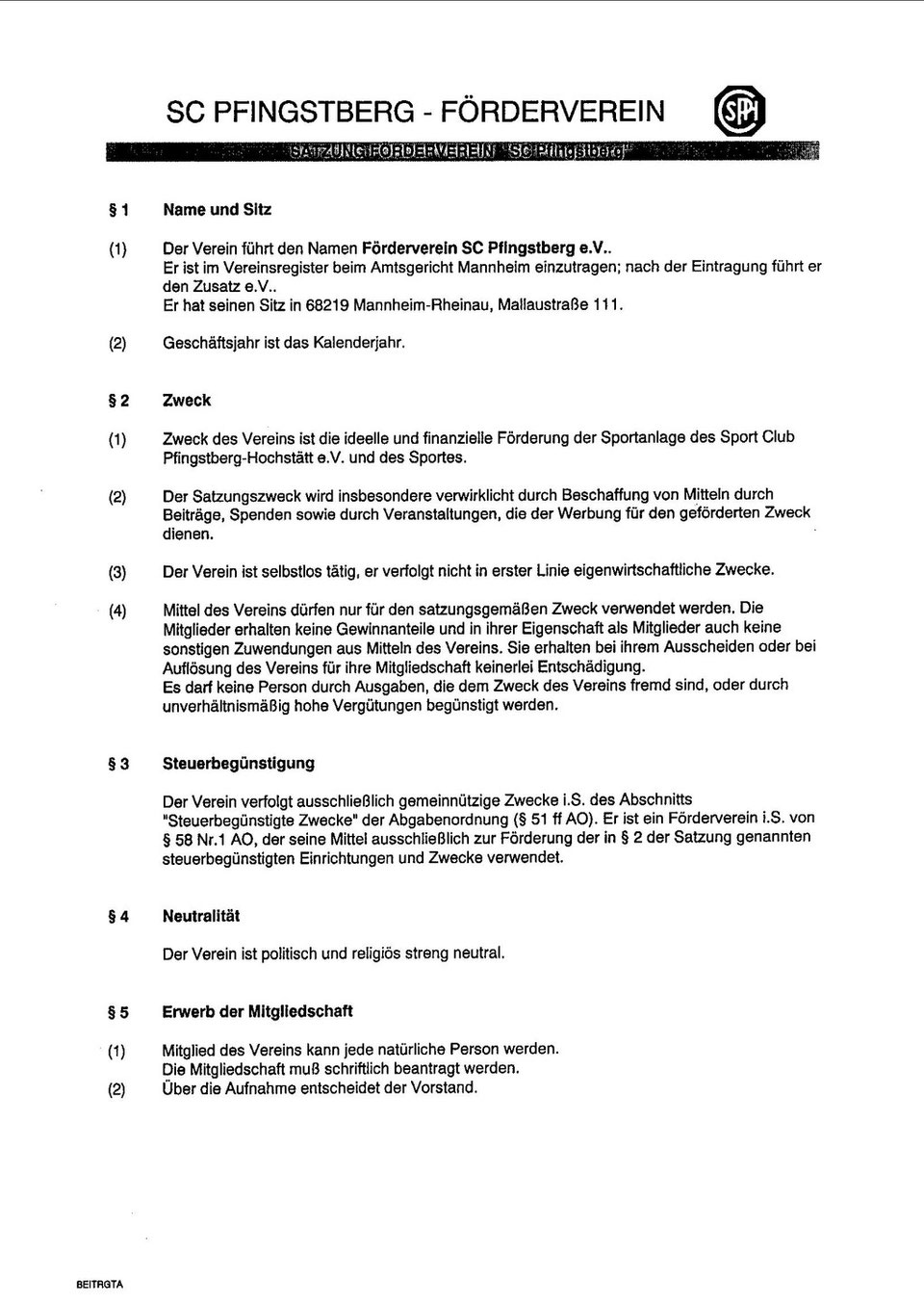 Satzung Förderverein